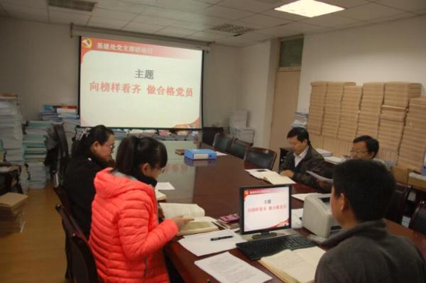 为扎实开展“两学一做”学习教育,进一步提高党员的思想认识和学习深度,充分发挥先进典型的示范带动作用,让基建处全体党员深刻理解制定《基建处合格党员行为规范》必要性及意义。11月3日上午,基建处党支部开展了以“向榜样看齐、做合格党员”为主题党支部活动日活动。活动中以观看专题节目《榜样》典型人物为镜,开展了《基建处合格党员行为规范》大讨论。