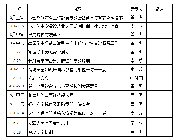 安全是餐饮服务工作的首要任务,通过各项活动的开展,加强了食品安全监管力度,落实食品安全责任制,进一步增加员工的安全意识和凝聚力,创造更为安全生产的工作环境,切实抓好食品卫生安全工作。